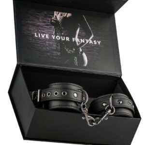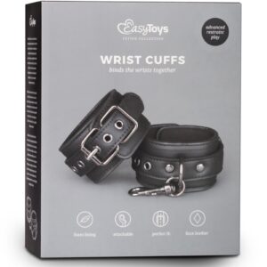 Affirmez votre autorité en attachant les mains de votre esclave avec les “Wrist Cuffs” de la marque Easytoys Fetish Collection, des menottes pour poignets de grande qualité en simili cuir et métal, idéales pour la pratique des jeux de domination et de soumission.