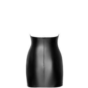 Cette mini robe très courte et très moulante en wetlook extensible noir mat et bustier de tulle transparent, est spécialement conçue pour sublimer vos charmes féminins.