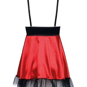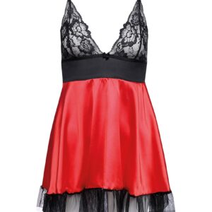 Une nuisette sexy en rouge et noir, composant la délicate douceur de la dentelle transparente, et l’éclatante brillance du satin.