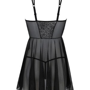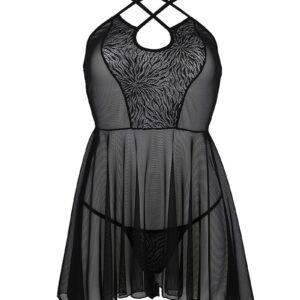 Le haut de la nuisette est habillé d’une belle dentelle aux charmants motifs effilés. Ses doubles bretelles croisées sur le décolleté affirment son style tendance et permettent un joli maintien de la poitrine.