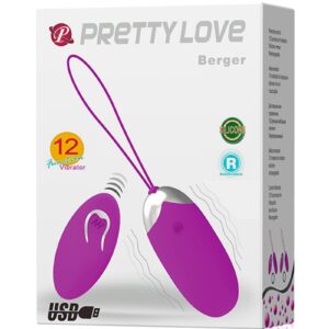 Pretty Love présente Berger, un Oeuf vibrant doux et lisse en silicone haute qualité, rechargeable, fonctionnant à l’aide d’une télécommande sans fil, pour se faire plaisir en solo ou en couple.