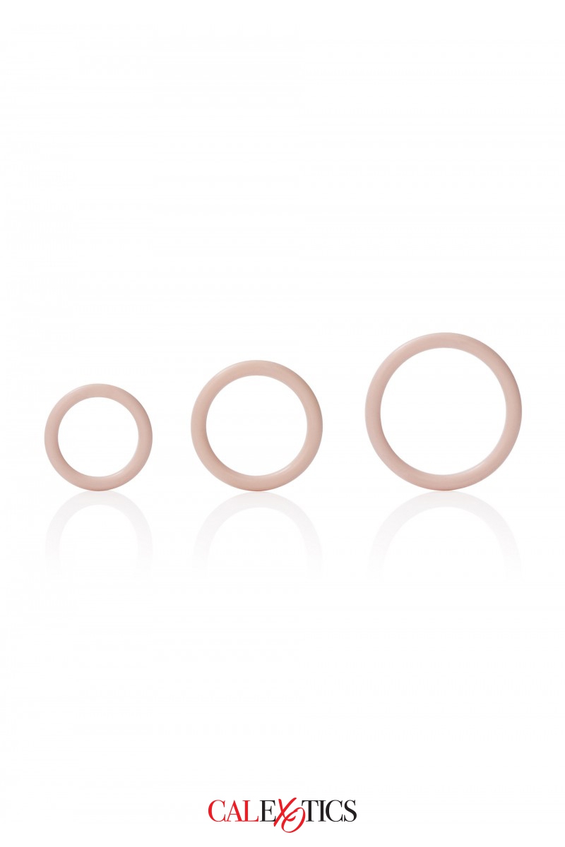 le pack Silicone Support Ring de la marque Calexotics contient 3 anneaux de diamètres différents: 3,25 cm, 3,5 et 4,5 cm. Les anneaux sont conçus en silicone de qualité supérieure. Ils sont extensibles, confortables à porter et utilisables comme cockrings, ballrings ou pour n’importe quel autre usage.
