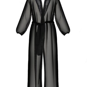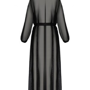 Les manches longues soulignent la finesse des bras et participent à affiner la silhouette. Bordé de dentelle sur le col et le décolleté, le déshabillé raffiné expose vos charmes sous le tulle transparent.