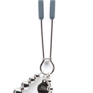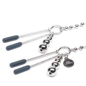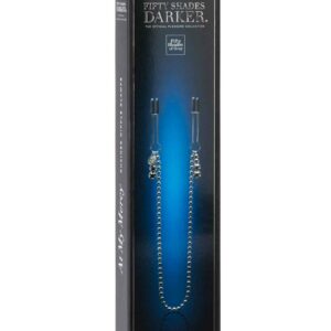 Parfait accessoire de vos jeux BDSM, “At my mercy” est un jeu de petites pinces à tétons avec chaine en métal, par Fifty Shades Darker.