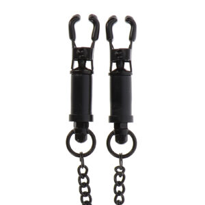 Repoussez vos limites avec les “Taboom Heavy Duty Adjustable Clamps”, de solides pinces à seins réglables reliées par une chaine de liaison en métal noir.