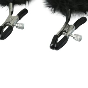 – 2 pinces à tétons réglables avec plumes noires décoratives