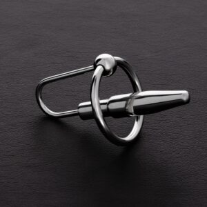 Fabriqué en acier inoxydable de haute qualité avec une finition polie, le Pénis plug ring est composé d’un anneau amovible sur lequel est fixé un petit plug d’urètre en forme de “Mini Fucker”.