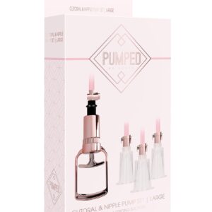 Augmentez la sensibilité de votre clitoris et de vos tétons avec la pompe à clitoris et tétons manuelle “Clitoral & Nipple Pump” de couleur Rose Gold et de taille Large de la marque Pumped.