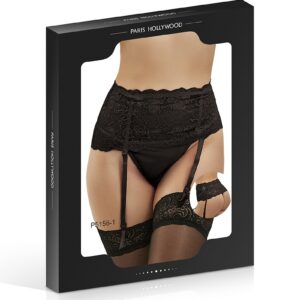 Ensemble porte-jarretelles sexy noir équipé de 4 jarretelles ajustables et de son string assorti, par Paris Hollywood.