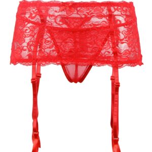 Osez ce porte-jarretelles en dentelle rouge très élégante et en forme de bandeau sur les hanches.
