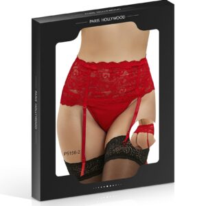 Ensemble porte-jarretelles sexy rouge équipé de 4 jarretelles ajustables et de son string assorti, par Paris Hollywood.