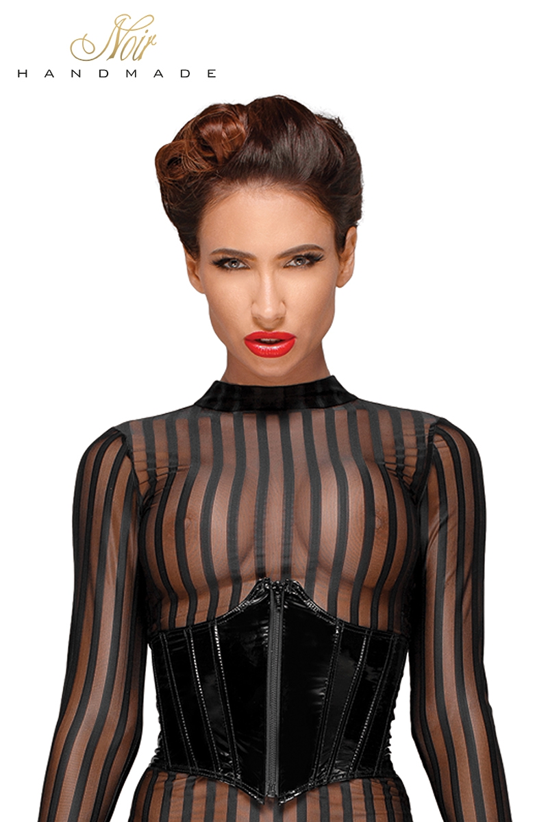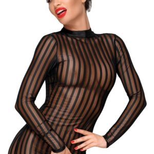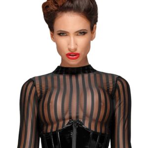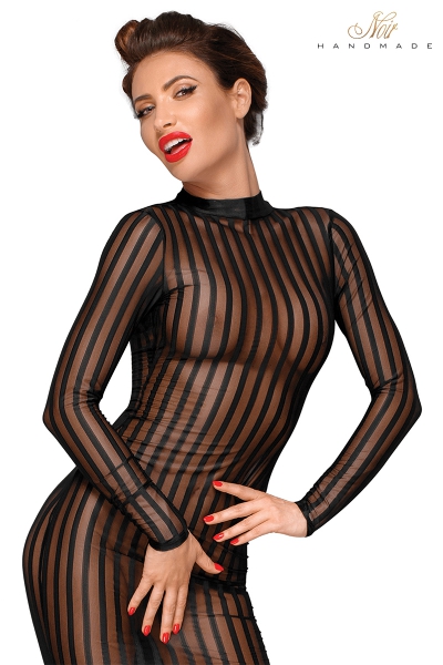 Le style couvrant avec ses manches longues et son col ras du cou amplifie l’effet de transparence du tulle rayé qui vous dévoile sans la moindre pudeur.