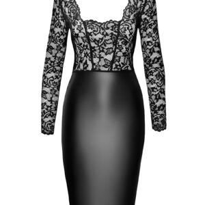 Savourez le style de cette robe extrêmement moulante, dont la jupe en wetlook particulièrement extensible dessine admirablement vos rondeurs, et le corsage cintré en dentelle au large décolleté carré met en valeur le galbe de la poitrine et la finesse de la taille.