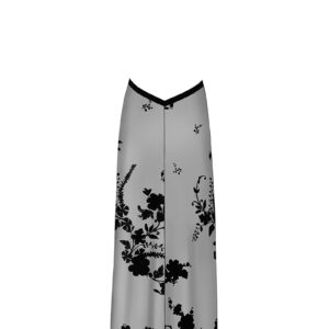 Robe longue dos nu en tulle transparent floqué d’un motif de fleurs