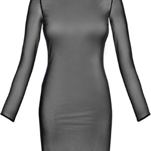 Provocante ou très sage suivant ce que vous porterez dessous, laissez-vous séduire par cette robe fourreau fabriquée en tulle noir transparent courte qui s’arrête à mi-cuisses.