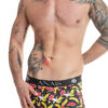 Ce slip sexy est fabriqué en tissu noir au motif de bananes et bouches sexy.