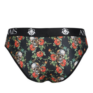 Ce slip sexy est fabriqué en Tissu doux imprimé de crânes et roses esprit RocknRoll.