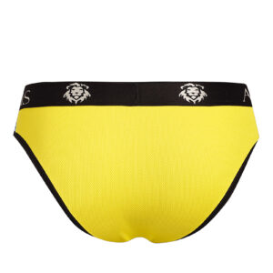 Ce slip sexy est fabriqué en Tissu jaune texturé esprit gaufré.