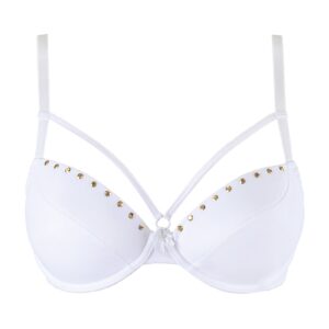 Impossible de résister au charme de ce soutien-gorge push-up d’un blanc lumineux, qui galbe vers le haut les rondeurs de la poitrine dans ses coques rembourrées.