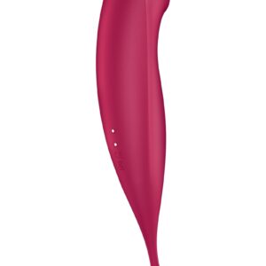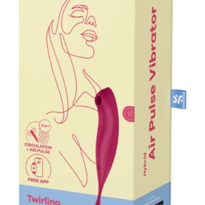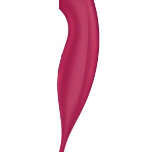 Le stimulateur deux en un Twirling Pro Connect App rouge de la marque Satisfyer est un puissant stimulateur connecté destiné d’un côté à procurer une stimulation par vibrations précise et intense de toute zone érogène, tandis que l’autre extrémité stimule le clitoris par des ondes de pression.