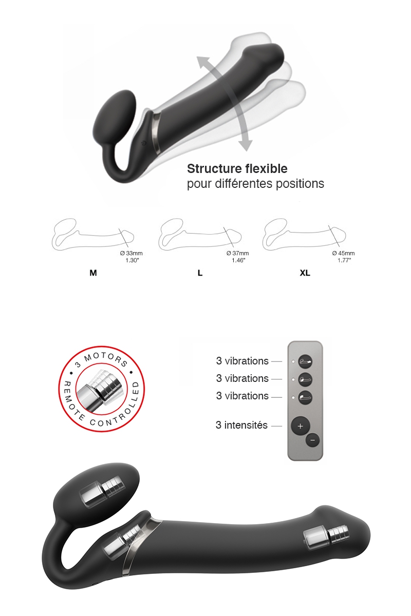 Mesdames, le gode ceinture anatomique vibrant avec contrôle par télécommande “Vibrating Bendable Strap On L” de la marque Strap-on-me, est ce qui se fait de mieux en matière de gode ceinture anatomique. N’hésitez pas à vous l’offrir, pour le plus grand plaisir de votre partenaire féminin ou masculin, et le votre !