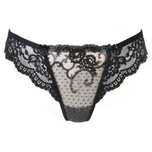 Une séduisante harmonie de dentelle noire et de tulle brodé, telle est l’atout charme de ce string style brésilien Axami, une lingerie féminine séduisante et attirante.