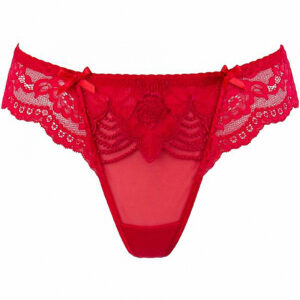 La sublime marque de lingerie Axami réinvente le string brésilien pour en faire un véritable bijou de lingerie avec ce modèle rouge V-9698, composition raffinée de dentelle aux détails précieux et de tulle délicat.