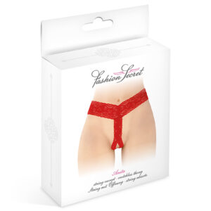 Le string ouvert Anita rouge est incroyablement coquin avec son ouverture sur le sexe et sa large ceinture en dentelle qui sublime la taille.