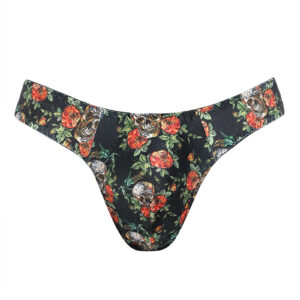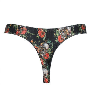 Ce string sexy est fabriqué en Tissu doux imprimé de crânes et roses esprit RocknRoll.