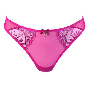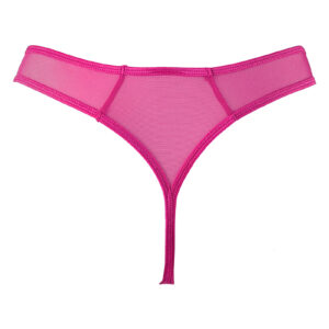 Elégant string en tulle rose fuchsia illuminé de broderies brillantes sur les cotés, justement nommé Brillance par Axami Lingerie.