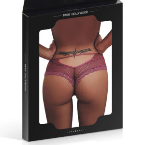 Sublimez vos fesses avec ce tanga bordeaux en dentelle, ajouré dans le creux des reins, de la marque Paris Hollywood.