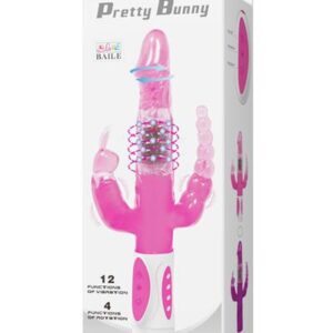 Véritable vibromasseur tout-en-un, Le vibro Pretty Bunny dispose de fonctions rotatives au niveau du gland et du corps principal (au niveau des billes) tandis que le stimulateur clitoridien et le stimulateur anal ont des fonctions vibrantes. Au total ce ne sont pas moins de 12 modes de vibration et 4 modes de rotation que vous pouvez régler simplement pour satisfaire vos envies.