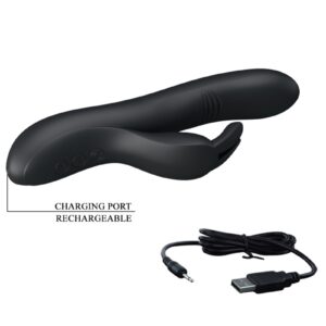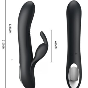 Sextoy dédié au plaisir féminin, Dylan est un vibromasseur Rabbit de la marque Pretty Love, qui stimule en même temps le clitoris et le vagin (tout particulièrement le point G). Une de ses particularités est d’associer la stimulation par vibrations au niveau du clitoris, à des caresses ressemblant à un mouvement de doigtage au niveau du vagin afin de mieux titiller le point G.
