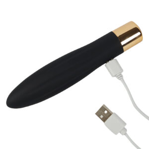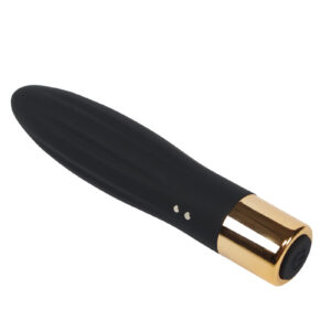 Sextoy Premium moderne, en silicone de haute qualité et au toucher doux, le vibro polyvalent Dakota est proposé dans une magnifique teinte bicolore noire et dorée.