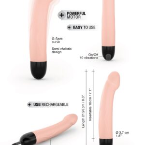 100% silicone soft touch, le sextoy est doux, soyeux, et très agréable au contact. Son moteur puissant offre 10 niveaux de vibrations. Avec sa forme courbée il est parfait pour la stimulation du point G.