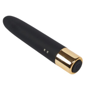 Sextoy Premium moderne, en silicone de haute qualité et au toucher doux, le vibro Texas est proposé dans une magnifique teinte bicolore noire et dorée.